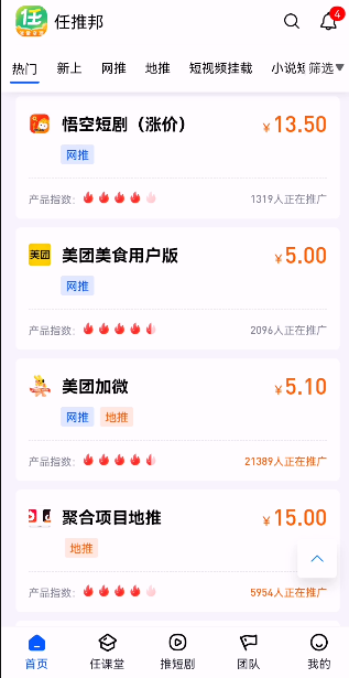 任推邦——于BD邦旗下崭露头角的地推平台,BD邦作为国内首屈一指的市场合作与人脉交流平台,其用户注册量已突破10万大关。而任推邦平台则是汇集了庞大的地推团队、多元化的地推项目、广泛的地推渠道以及高效的CPA渠道等资源。